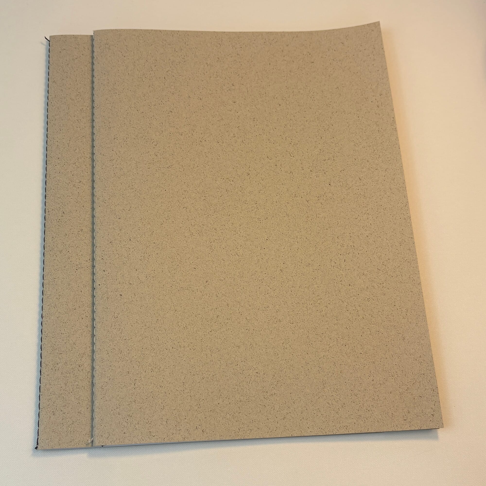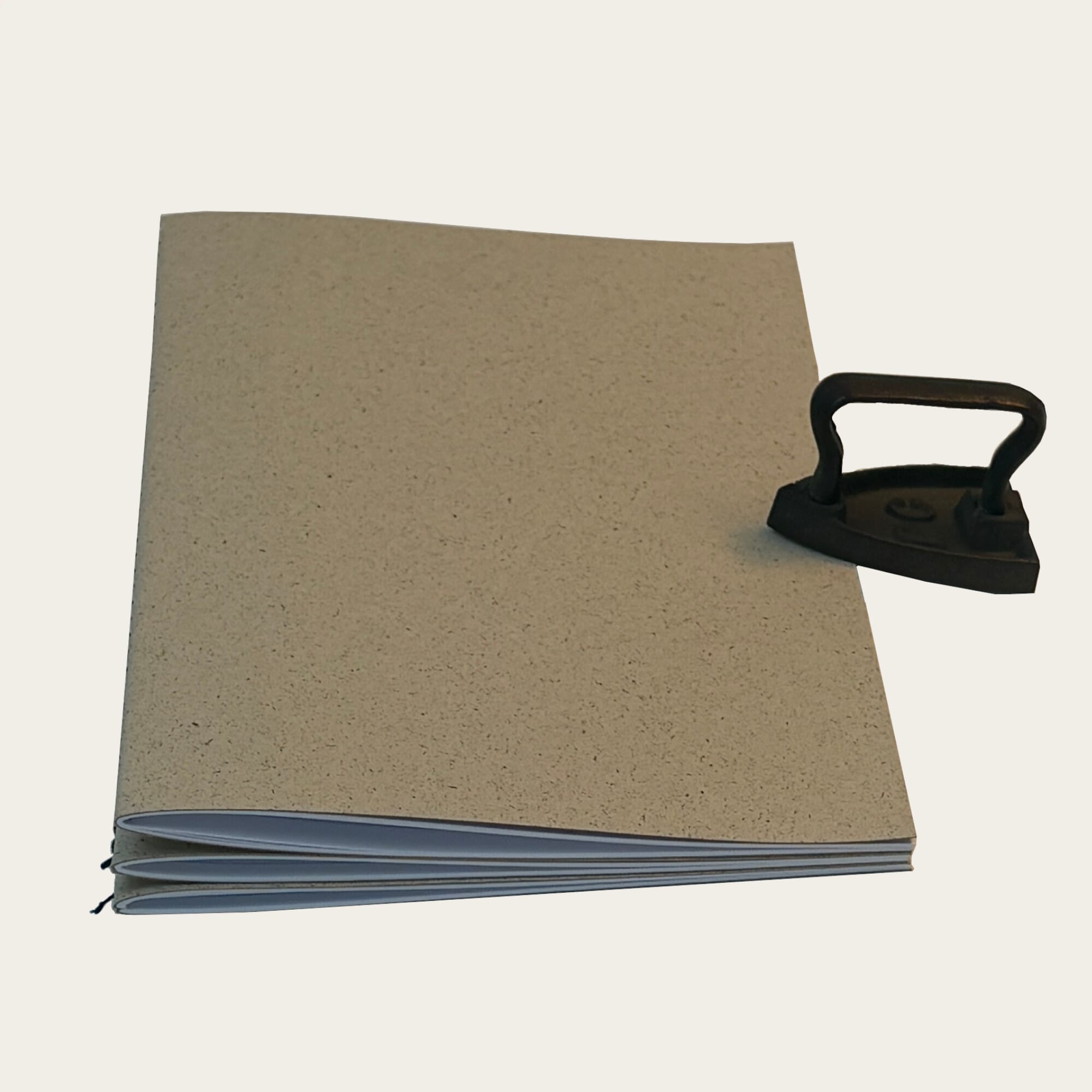 Wiesenheft A5 – handgebunden mit Steppstich, Umschlag aus Graspapier, innen Plano oder kariert. Natürliches Notizheft, gefertigt in Bern.